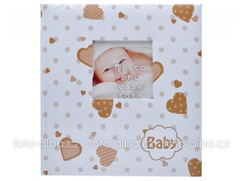Klasické šité dětské fotoalbum na fotky vašich miminek a dětí v hnědé, neutrální variantě. Do okénka na přední desce si vložte fotografii svého miminka a dotvoříte si tak vzhled alba. K vlepování fotek slouží 60 stran (30listů) mezi kterými je jemný papír pro lepší ochranu protilehlých fotografií. Kvalita zpracování od německého výrobce KPH. Detailní informace o rozměrech foto alba naleznete ve schématu mezi fotografiemi.