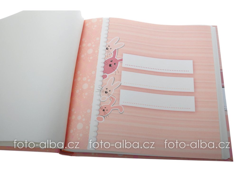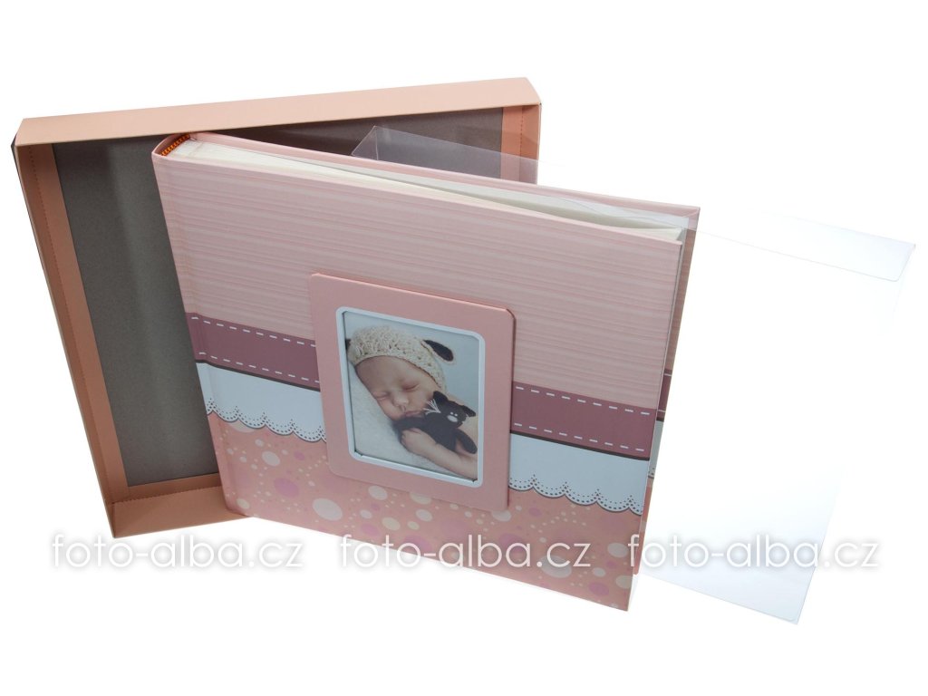 Klasické foto album Cinzia pro fotografie vašeho děťátka v růžovém provedení.Na přední desce má rámeček pro vložení vlastní fotky. Uloženo v přepravním boxu s průhledným víkem. První strana je určena pro zapsání důležitých údajů. Album obsahuje 60 stran (30listů) mezi kterými je jemný papír pro lepší ochranu vlepených fotografií. Na zadní desce najdete kapsu pro uložení CD se zálohou fotek v albu.